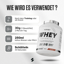 Nehmen Sie eine Dosis von 30 g (ein Messlöffel), verdünnt in etwa 250 ml kaltem Wasser oder fettarmer Milch.