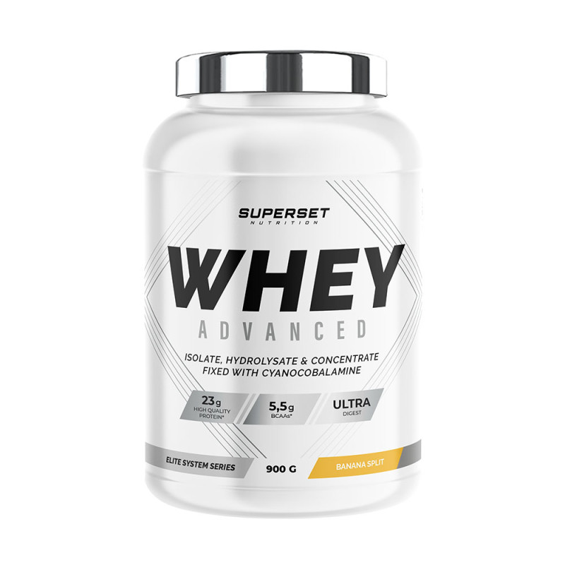 Whey-Protein-Konzentrat (auf der Grundlage von milch, emulgator: Lecithin von soja), weißes Schokoladenpulver (milch), Aromen (Banane, weiße Schokolade), mikrofiltriertes Instant-Whey-Proteinisolat (auf Basis von milch, emulgator: Lecithin von soja), Whey-Protein-Hydrolysat (auf der Grundlage von milch), Süßstoffe (Acesulfam K, Sucralose), Verdickungsmittel (Xanthan), L-Ascorbinsäure, Inulin, Säuerungsmittel (Zitronensäuremonohydrat), Bromelain-Extrakt aus Ananas comosus (1200 GDU), Papain-Extrakt aus Carica papaya (1,5 FIP U/MG), Nicotinamid, Cyanocobalamin, Pyridoxinhydrochlorid, Thiaminmononitrat.