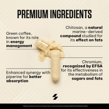 Food supplements should be used as part of a healthy lifestyle and not as a substitute for a varied, balanced diet. Best taken with a meal or a glass of water. Avoid taking on an empty stomach for people sensitive to caffeine. Total caffeine content: 16mg/3 capsules. Not recommended at the end of the day or for people sensitive to caffeine. Do not exceed recommended daily dose. Not recommended for children, teenagers, pregnant or breast-feeding women, or for people with heart problems or under anti-diabetic treatment. Seek the advice of a healthcare professional in case of doubt. Keep out of reach of children.