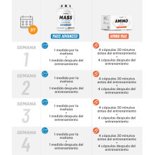 ¡Gane masa muscular en 4 semanas con un programa todo en uno desarrollado por nuestro equipo de expertos! Ha sido especialmente diseñado para facilitar su ganancia de masa. ¡Encontrarás tus suplementos con un completo e-book a seguir para alcanzar tu objetivo!