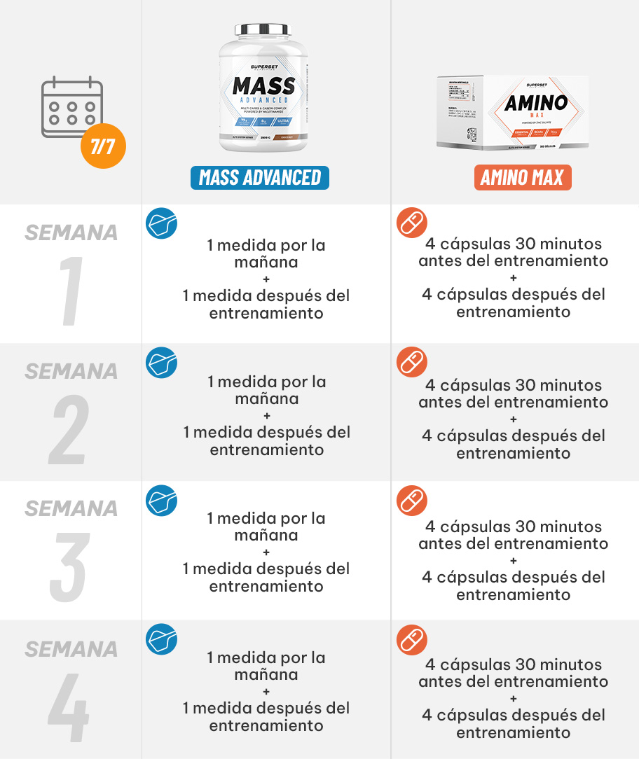 RENOVACIÓN: Este programa puede renovarse regularmente en combinación con una dieta adecuada para seguir ganando peso.