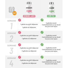 La prise de tes compléments recommandée dans ce programme peut différer des conseils d’utilisation des compléments à l’unité. Ici, les recommandations sont adaptées à l’association des compléments de ton programme.