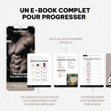 Augmente ton volume et ta force musculaire durant 4 semaines avec un programme all-in-one élaboré par notre équipe d'experts. Tu retrouveras les meilleurs compléments pour booster tes séances et augmenter ton endurance. N'oublie pas de suivre ton e-book complet pour atteindre ton objectif !