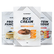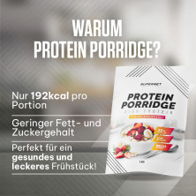 PROTEIN PORRIDGE : mélanger 50 g de poudre (une dosette) avec 45-60 ml d‘eau ou de lait, jusqu’à obtention de la consistance idéale et laisser reposer 1-2 minutes avant de déguster.