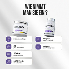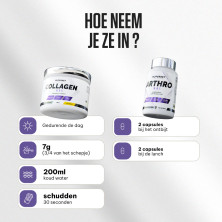 COLLAGEN MAX (350G) : prendre une dose de 7 g (3/4 de la dosette) dans 200 ml d’eau froide, agiter avec un shaker et boire. Prendre une dose par jour.
