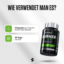 Prendre au cours d’un repas en raison de la présence de thé vert (teneur en caféine 173 mg / 3 gélules ; teneur en EGCG (113mg / 3 gélules). Ne doit pas être consommé à jeun. Ne doit pas être consommé si vous consommez d'autres produits contenant du thé vert le même jour. Une consommation journalière supérieure ou égale à 800 mg d’EGCG est déconseillée.