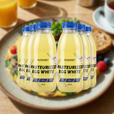 Blanc d’ŒUFS liquide pasteurisé, provenant de poules élevées au sol. Sans colorants, sans conservateurs.