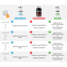 La prima settimana di questa guida è un periodo di adattamento durante il quale il corpo immagazzina i principi attivi. Le settimane successive intensificheranno l'azione di questi principi attivi naturali per favorire la comparsa dei risultati. È possibile che verso la fine del programma si esauriscano alcuni integratori. Questo non influirà in alcun modo sui vostri progressi. È sufficiente continuare ad assumere gli altri. Inoltre, se al termine del programma ne rimangono altri, è possibile terminarli.