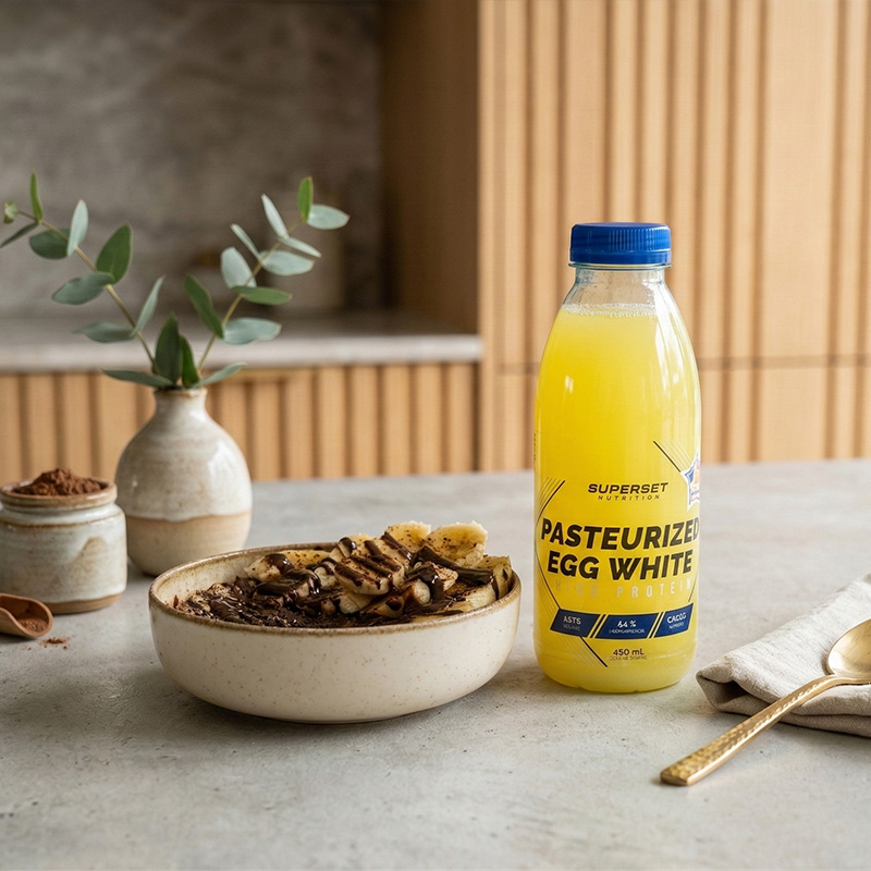 Gepasteuriseerd vloeibaareiwit van scharrelkippen. Geen kleurstoffen of conserveringsmiddelen.